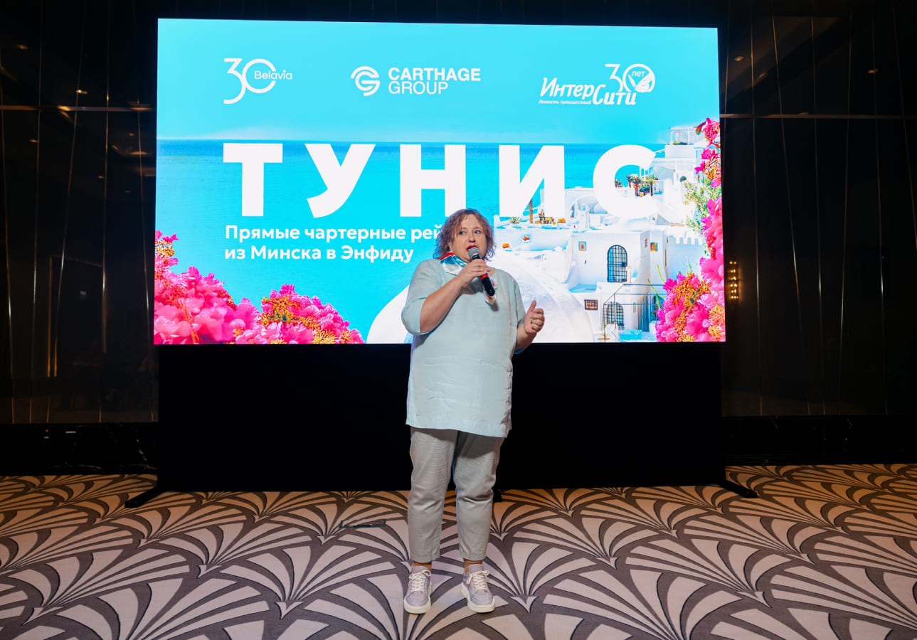 Ирина Букадида: Заказчиком и консолидатором воздушного судна, которое обеспечит прямое авиасообщение между Беларусью и Тунисом, является давний партнер Carthage Group, компания с более чем 30-летним опытом работы в туристической отрасли, крупный белорусский туроператор «Интерсити». В рамках полетной программы, стартующей 22 мая, компания «Интерсити» оставила за собой более половины пассажирских мест, также удовлетворив заявки на получение блоков мест, поступившие от ряда туроператоров Беларуси, заинтересованных в участии в прямых полетах. Ими стали «Ростинг», «Тайм Вояж», «Вояжтур» и «АэроБелСервис».