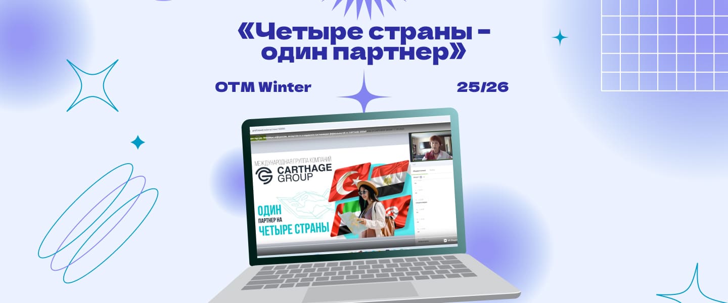 С 25 августа по 17 сентября на платформе медиахолдинга Profi.Travel состоялась международная туристическая онлайн-выставка OTM Winter 25/26. Все три недели работы этого традиционного знакового мероприятия действовал виртуальный стенд Carthage Group, о котором мы получили множество положительных отзывов от коллег. В рамках нетворкинга шел активный обмен визитками, а «гвоздем» нашей программы стали, конечно же, вебинары.